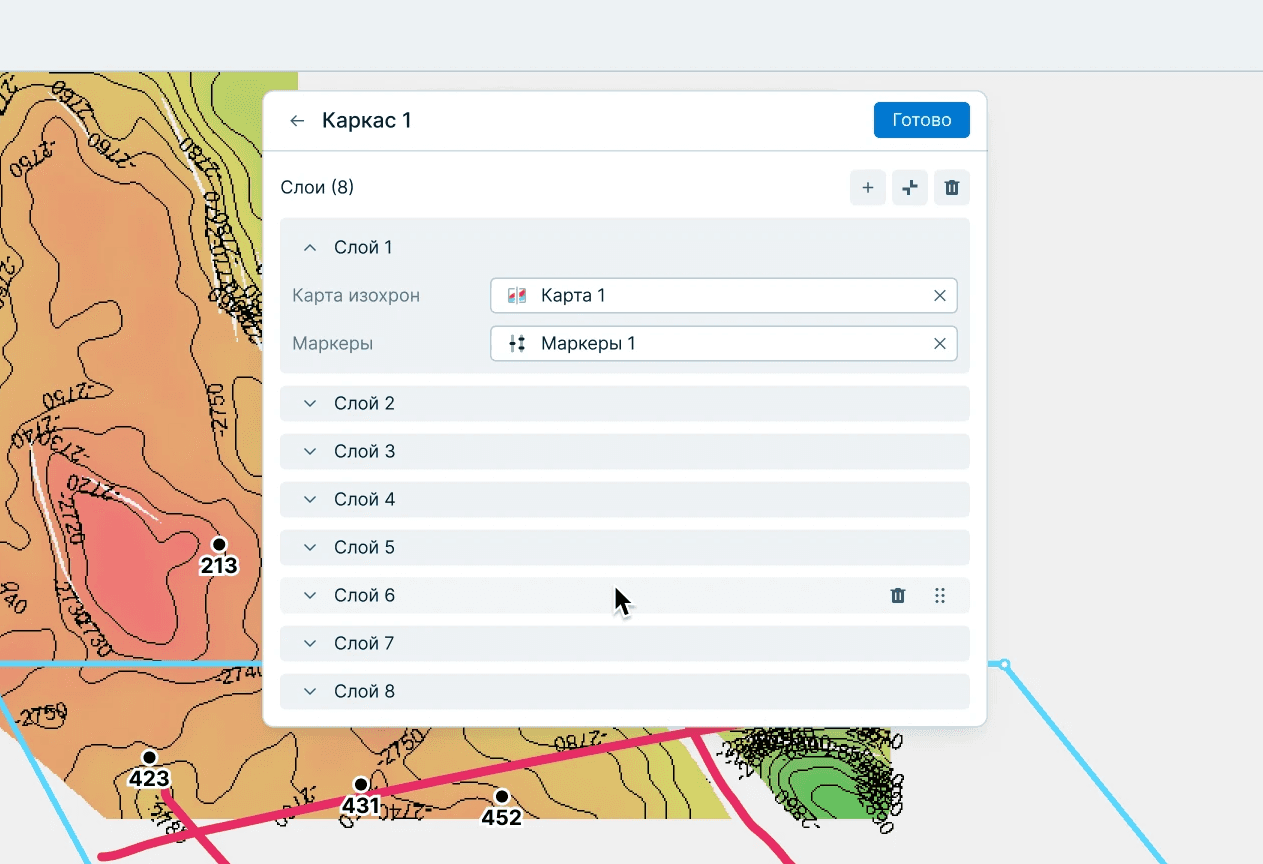 Работа с каркасом: результат расчета ГСМ по шаблону
