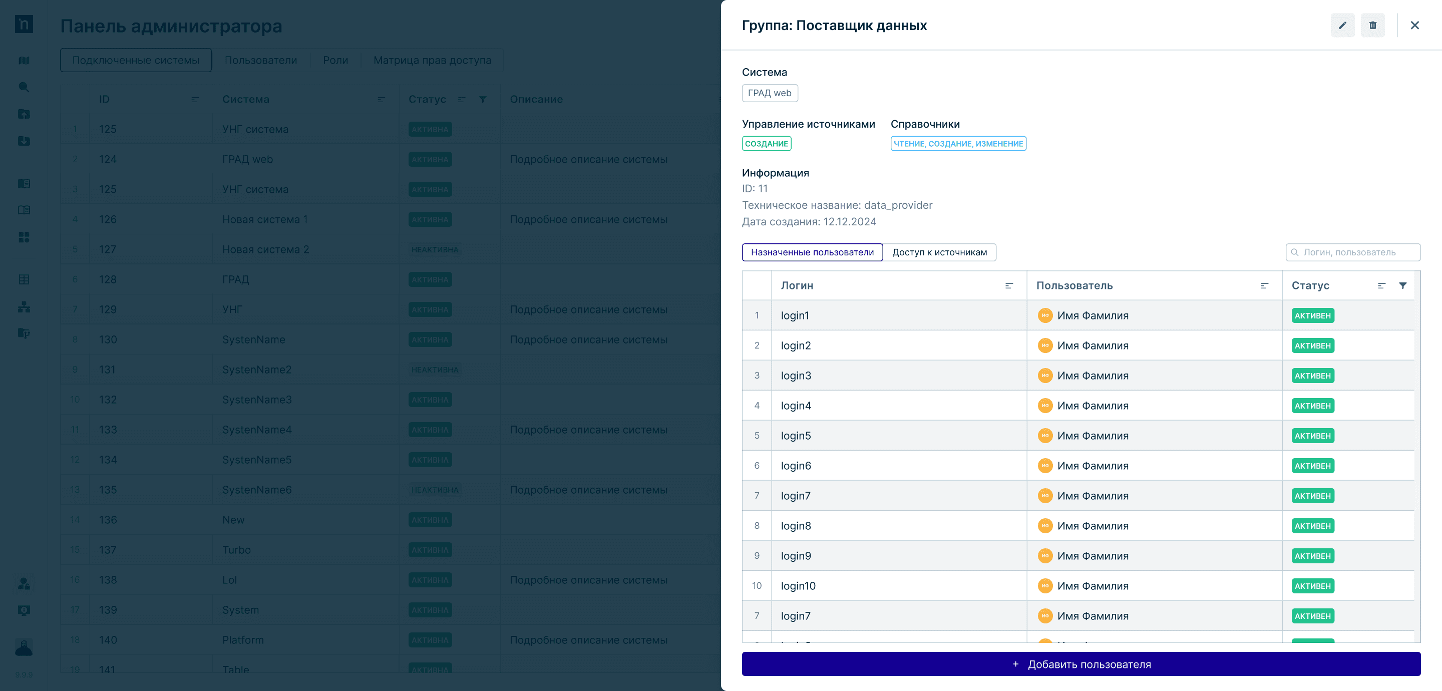 Панель администрирования: мы спроектировали гибкий контур администрирования, позволяющий каждому продукту (системе) тонко настраивать права доступа к своим данным через роли и группы
