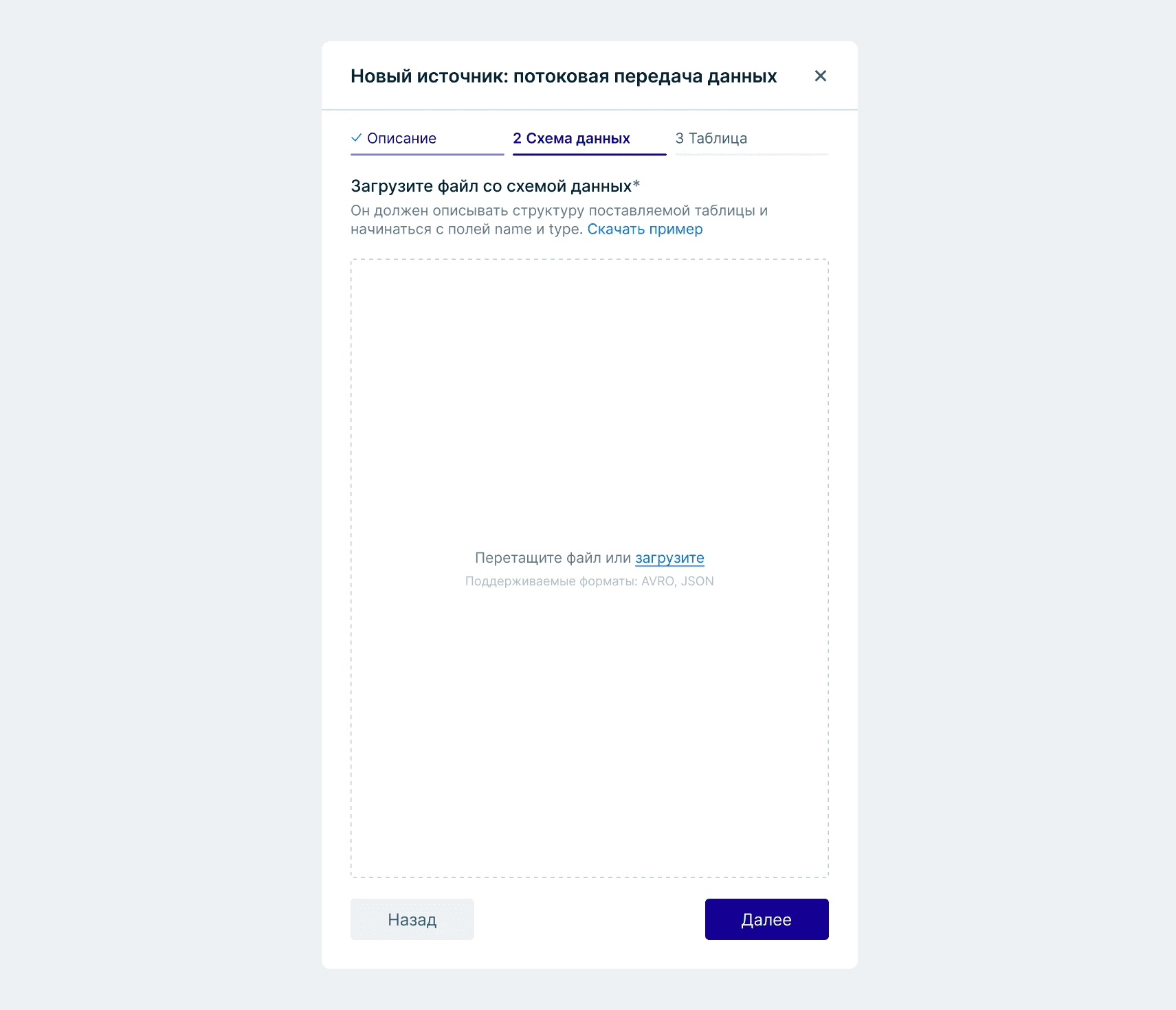Загрузка данных в источник данных потокового типа: вместо перегруженных требований в интерфейсе я предложила использовать файлы-примеры - пользователь может сразу увидеть корректный формат данных и либо адаптировать пример под себя