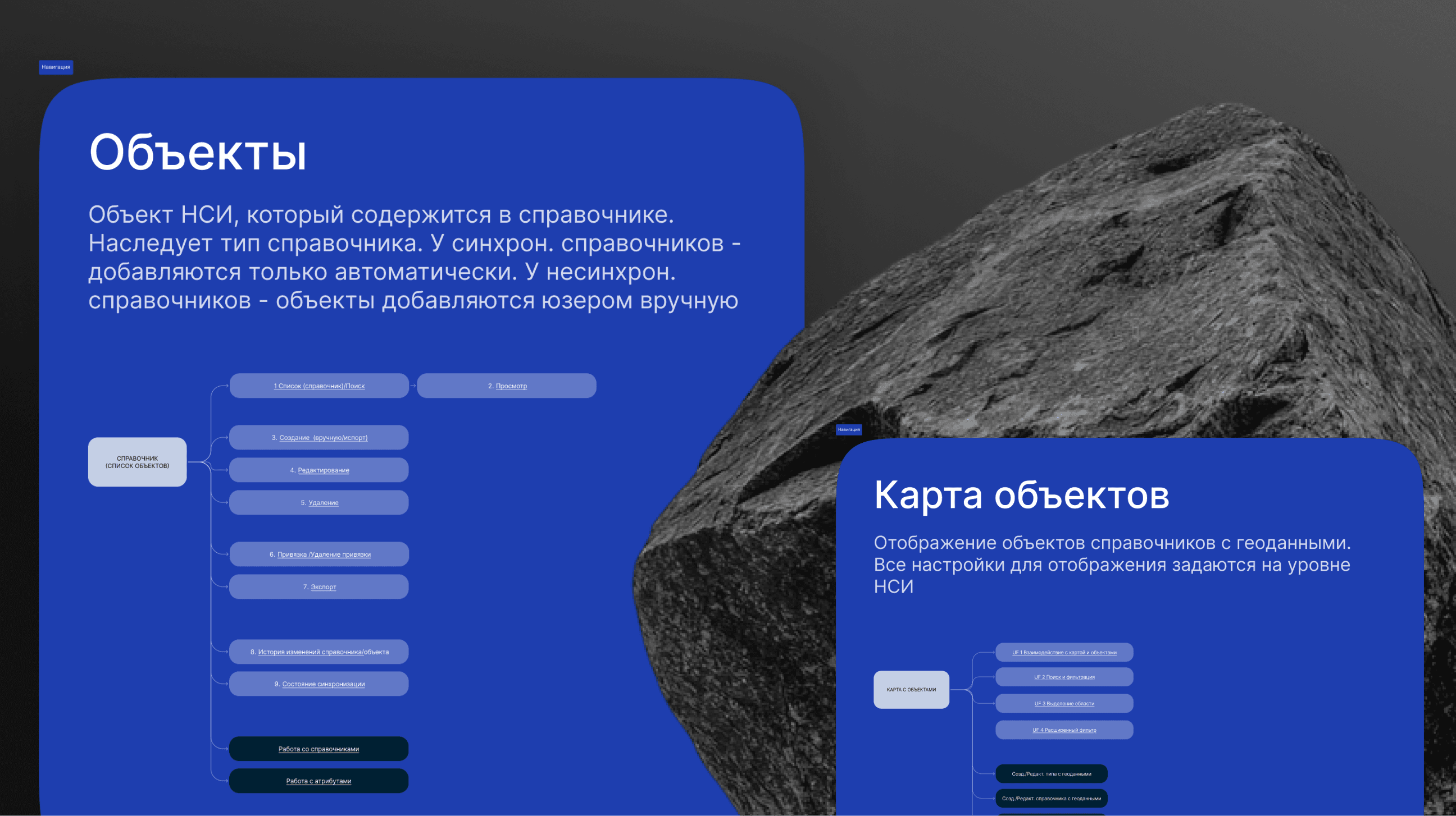Концепция: Nedra Data Platform объединяет данные вокруг физических объектов. Пользователи создают и импортируют объекты в нормативную модель, привязывают к ним расчёты, файлы и документы, а потребители находят нужную информацию через поиск или карту объектов