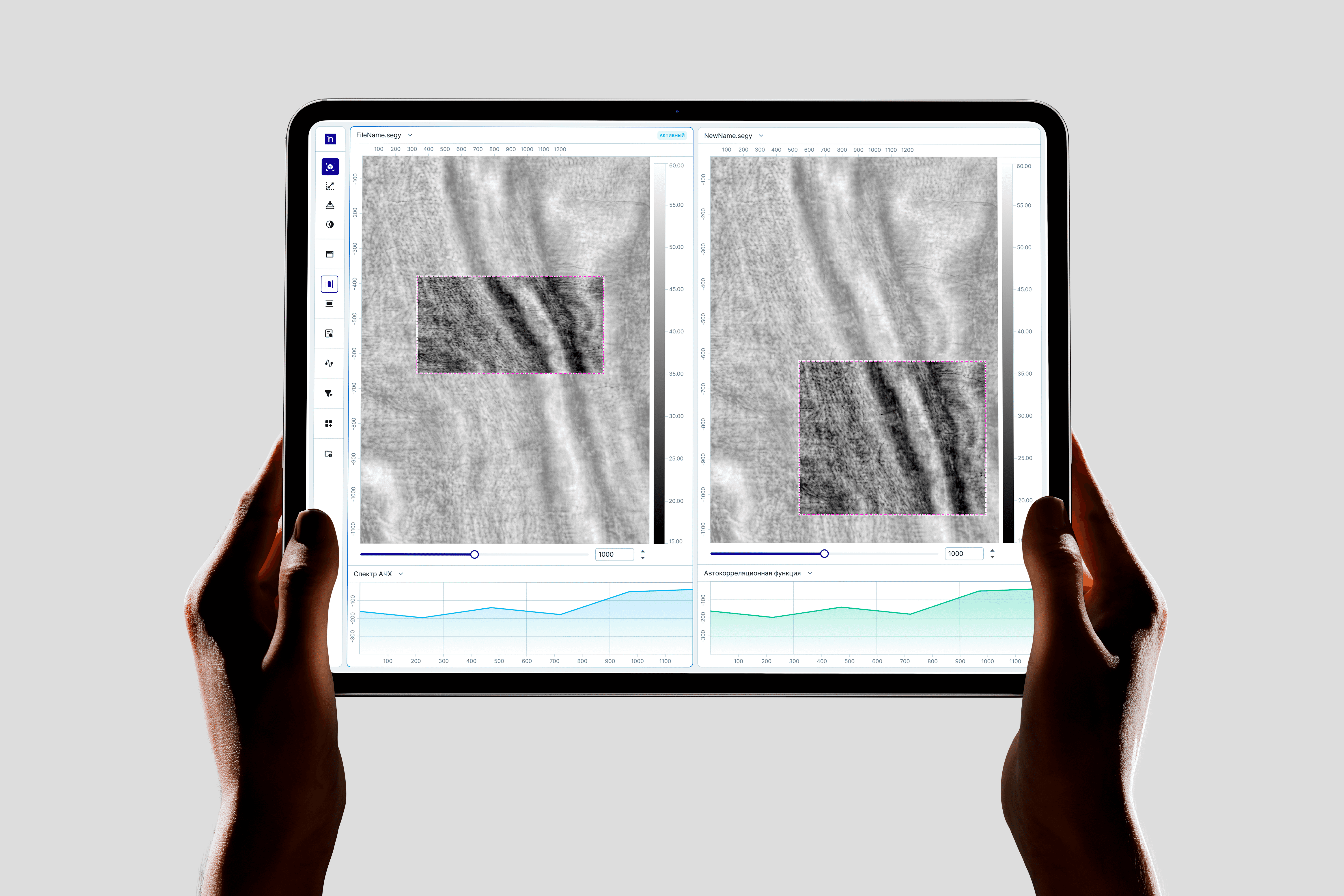 Собрала требования геофизиков и проанализировала структуру тяжелых массивов данных. Выделила параметры для первых секунд работы: амплитуда, спектр, координаты. Ограничения рендера потребовали освободить восемьдесят процентов экрана под рабочую область